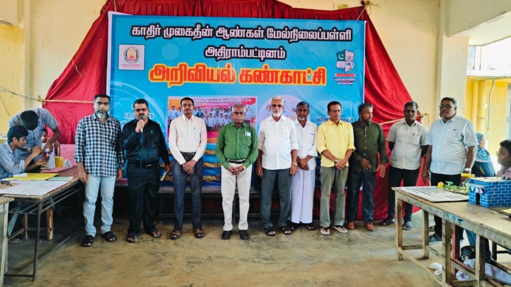 அரசு நிதியுதவி பெறும் அதிராம்பட்டினம் காதிர் முகைதீன் ஆண்கள் மேல்நிலைப் பள்ளியில் நடைபெற்ற அறிவியல் கண்காட்சியில் நூற்றுக்கணக்கான மாணவர்கள் தங்களின் அறிவியல் படைப்புகளைக் காட்சிப்படுத்தினர். மாவட்ட கல்வி அலுவலர் (தொடக்க கல்வி) மதியழகன் தொடங்கி வைத்தார். வட்டார கல்வி அலுவலர் திருமதி மீனா சுந்தரி, பெற்றோர் ஆசிரியர் கழகத் தலைவர் எம்.நைனா முகமது உள்ளிட்ட பல்வேறு பள்ளிகளைச் சேர்ந்த ஆசிரியர்கள் கலந்து கொண்டனர்.
