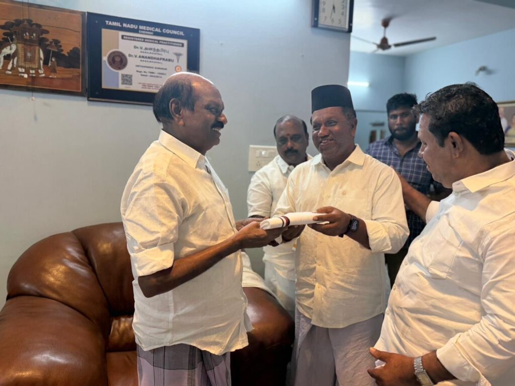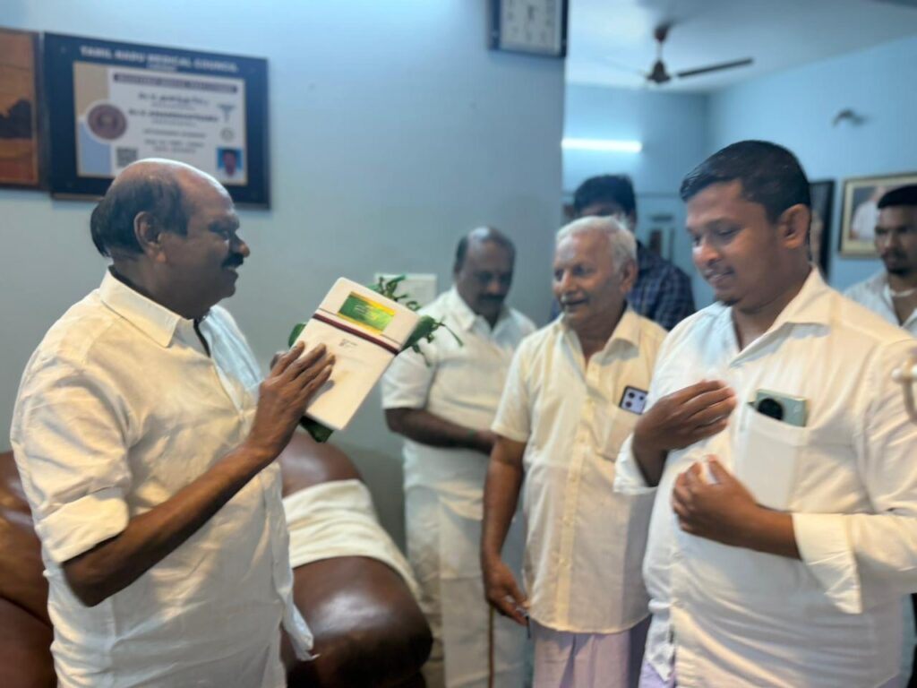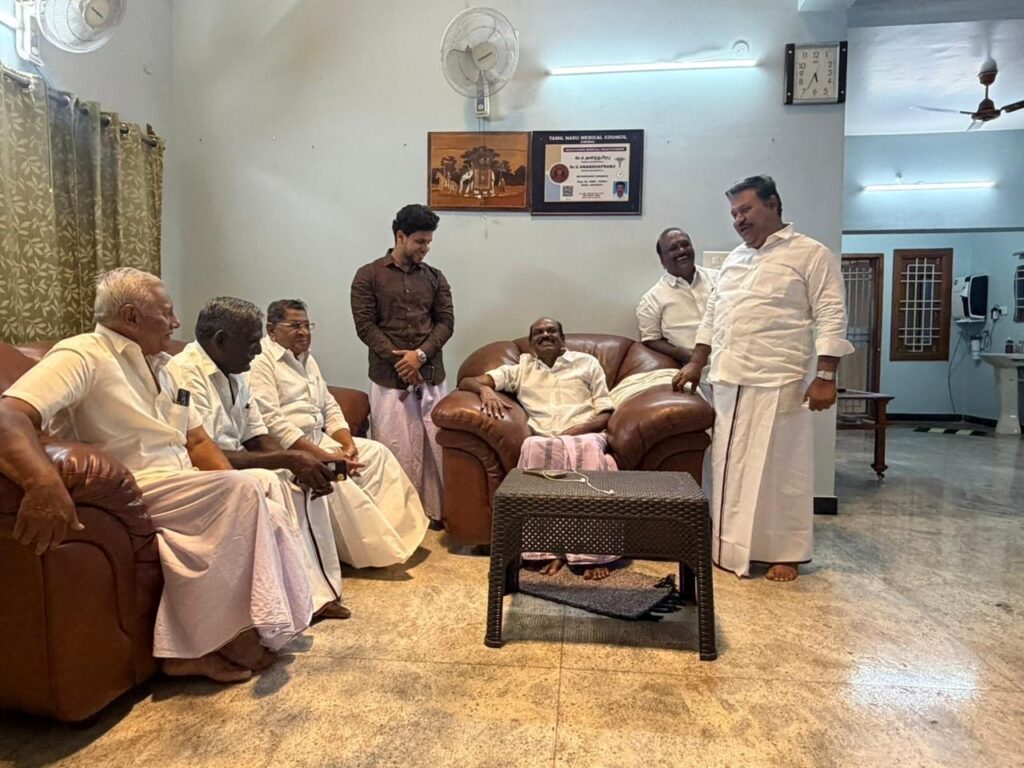 முன்னால் அமைச்சர் அவர்களை அதிராம்பட்டினம் திமுக கிழக்கு நகர செயலாளர் திரு ராம குணசேகரன் மற்றும் நகர்மன்ற தலைவர் எம்.எம்.எஸ் தாஹிரா அப்துல் கரீம், சமீபத்தில் அஇஅதிமுகவில் இருந்து விலகி முதலமைச்சர் முன்னிலையில் தன்னை திமுகவில் இணைத்து கொண்ட அதிரை அப்துல் அஜீஸ் ஆகியோர், முன்னாள் அமைச்சர் திரு வைத்தியலிங்கம் அவர்களை அவர்களது இல்லத்தில் மரியாதை நிமித்தமாக சந்தித்து சால்வை அணிவித்து மரியாதை செலுத்தி வாழ்த்து தெரிவித்தனர்.