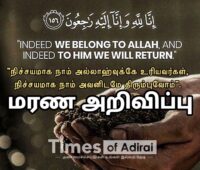 எங்களின் பதிவுகளை உங்களுக்கு நினைவூட்ட இணைந்திருங்கள் டைம்ஸ் ஆஃப் அதிரை வாட்ஸ் ஆப் குழுமத்துடன்.⬇️