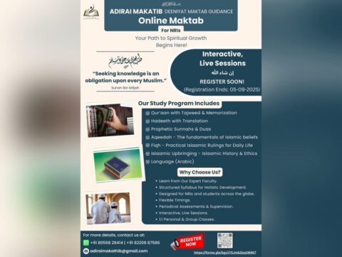 அதிரை மகாதிப்: வெளிநாடு வாழ் இந்தியர்களுக்கான ஆன்லைன் மக்தப் அட்மிஷன் நாளையுடன் நிறைவு!