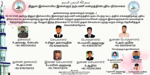 கடந்த 06/02/2026 ஜும்மா தொழுகைக்குப் பிறகு தீனுல் இஸ்லாமிய இளைஞர் நற்பணி மன்றத்தின் புதிய நிர்வாகிகளை தேர்ந்தெடுப்பதற்கான கூட்டம் ஜமாத் நிர்வாகிகள் முன்னிலையில் நடைபெற்றது. இக்கூட்டத்தில் முஹல்லாவாசிகள் மற்றும் இளைஞர்கள் திரளானோர் கலந்து கொண்டு புதிய நிர்வாகிகளை தேர்ந்தெடுத்தார்கள். புதிய நிர்வாகிகள்